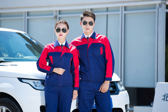全棉纱卡藏青色拼红色拉链式工作服长袖套装GZ-8019